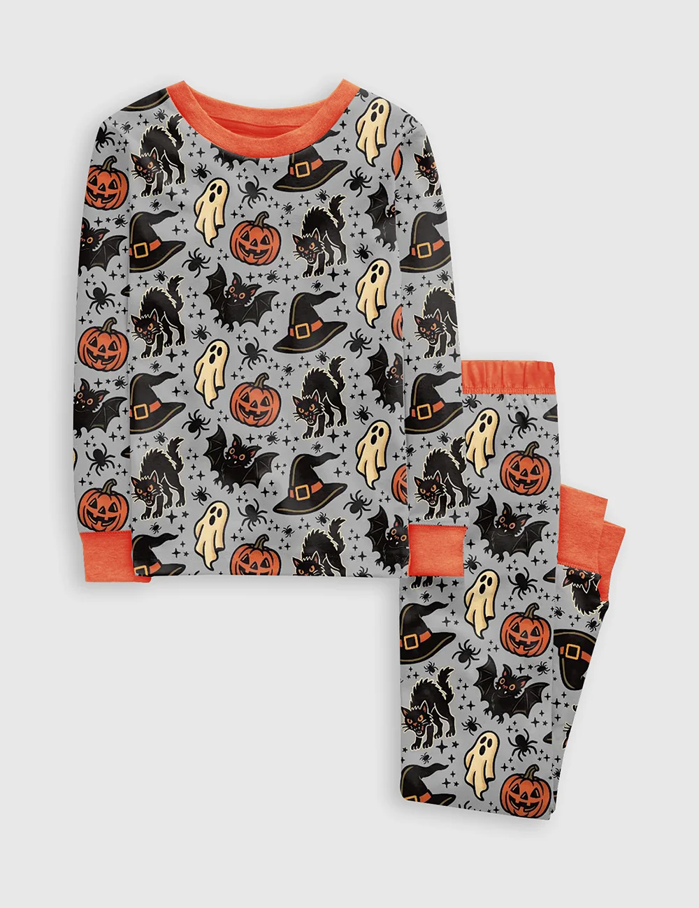 Kid's Halloween Spooky Ghosts Bats Cats Pumpkins Witch Long Sleeve Pajama Set