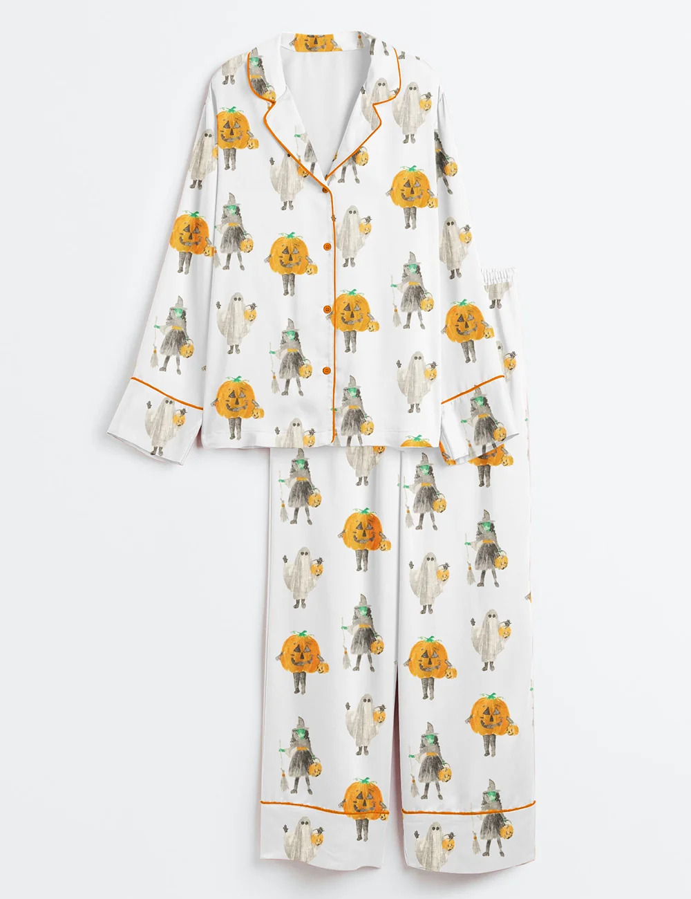 Men’s Witchy Halloween Spooky Pumpkin Aesthetics Witchy Halloween Witch Print Long Sleeve Satin Pajama Set