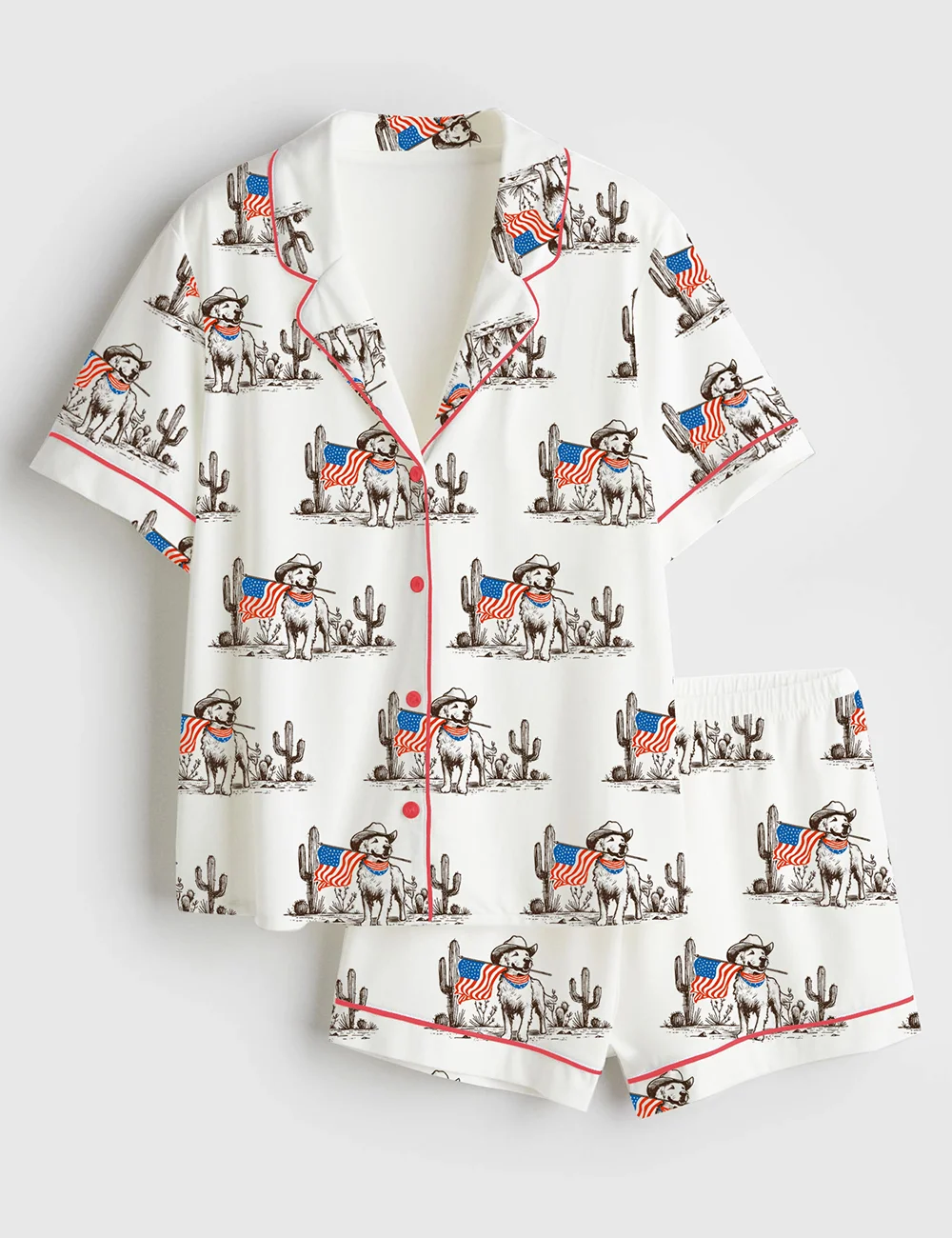 Women’s American Pride Pooch Memorial & Independence Day Cowboy Western Short Sleeve Satin Pajama Set