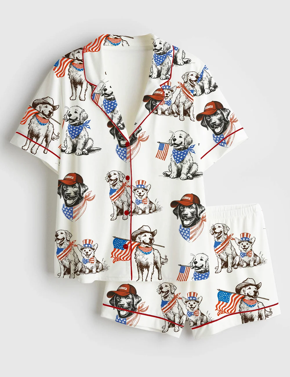 Women’s American Pride Pooch Western Patriotic Dog 4th Of July Print Short Sleeve Satin Pajama Set