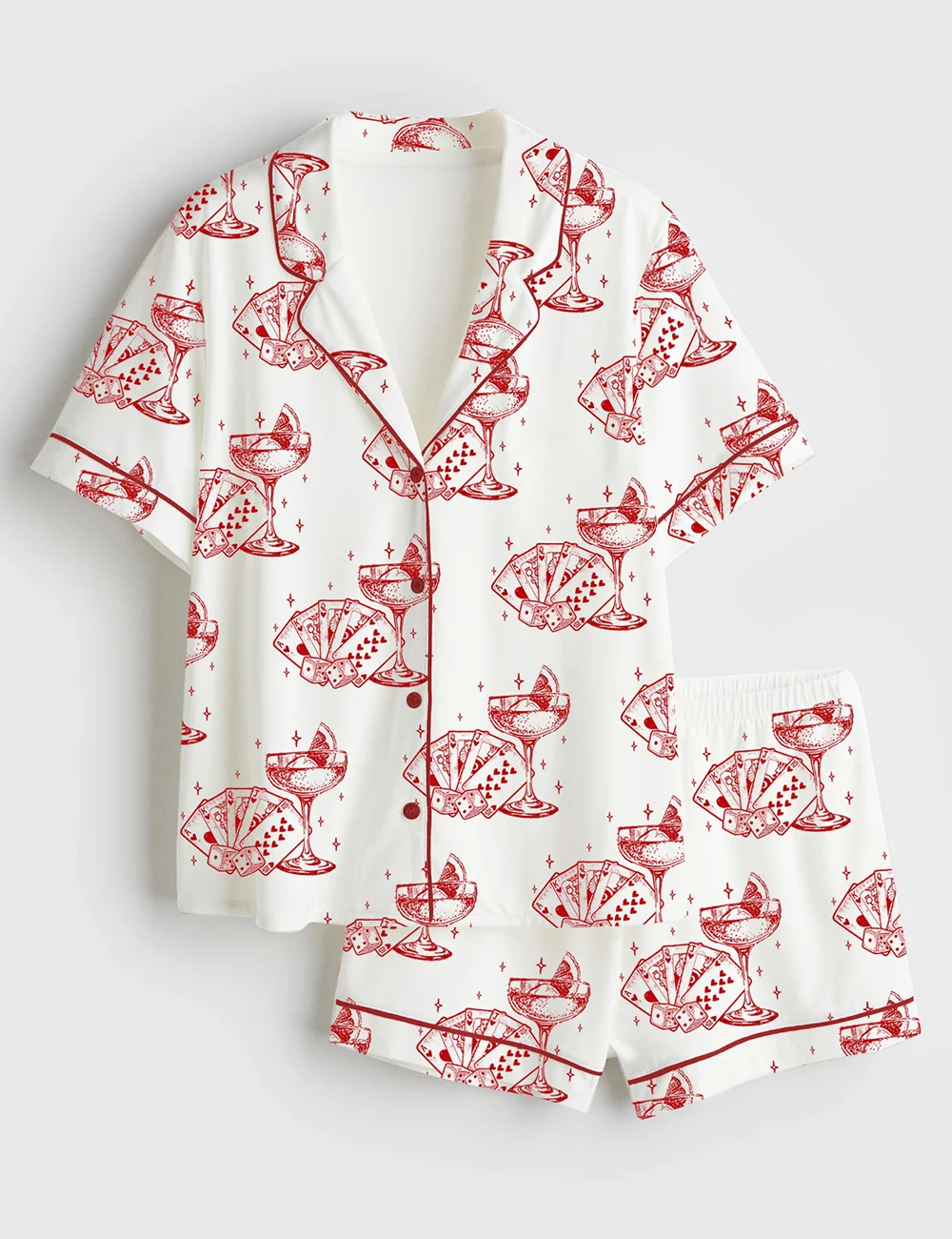 Women’s Bachelorette Party Casino Theme Bachelorette Las Vegas Bach Party Short Sleeve Satin Pajama Set