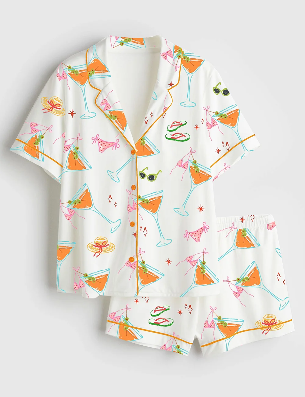 Women’s Bikinis And Martinis Bachelorette Party Cape Cod Girls Trip Summer Beach Print Short Sleeve Satin Pajama Set