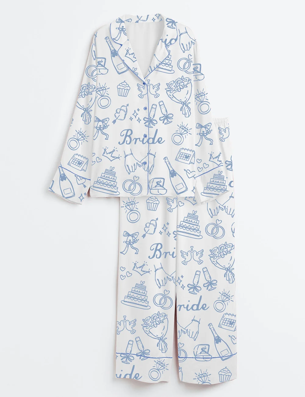 Women’s Bride Bridesmaid Bridal Party Wedding Day Long Sleeve Satin Pajama Set
