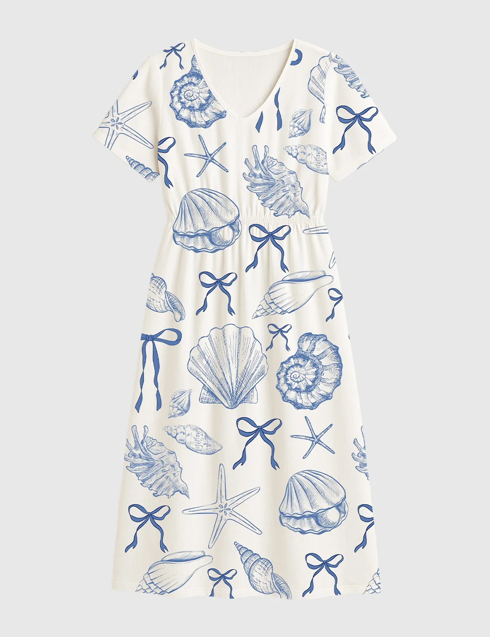 Women’s Coquette Seashell Beach Coastal Summer Vibes Short Sleeve Dress
