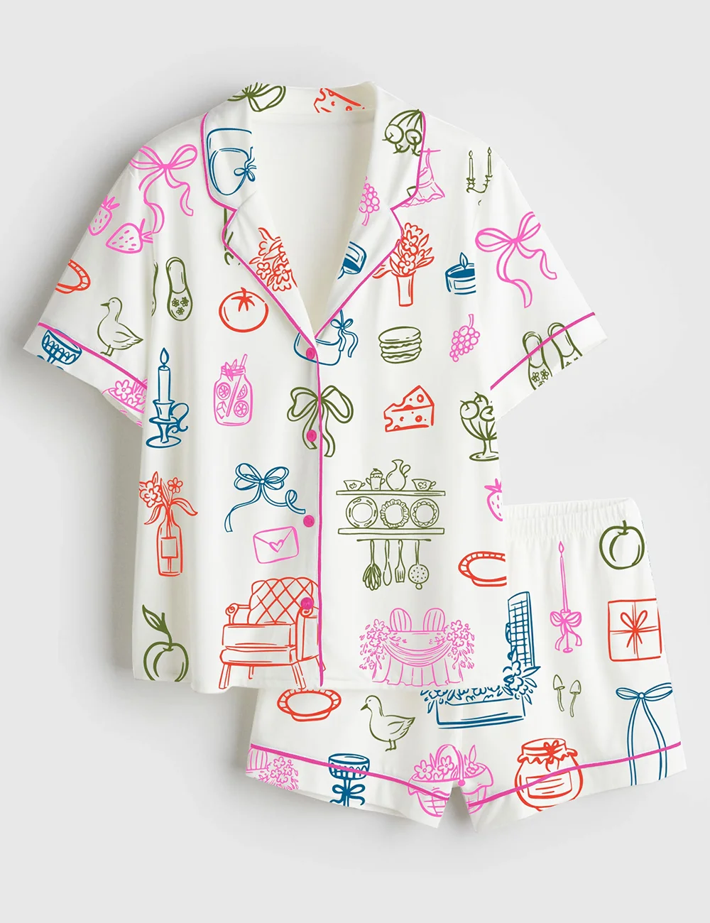 Women’s Cottagecore Cozy Countryside Farmhouse Aesthetic And Whimsical Wedding Prints Short Sleeve Satin Pajama Set