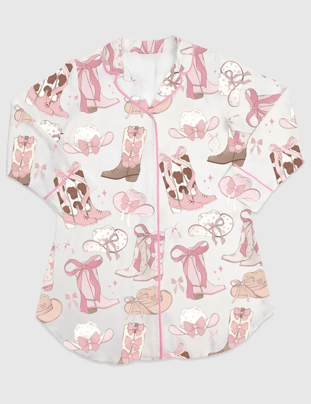 Women’s Cowgirl Coquette Long Sleeve Satin Sleep Shirt