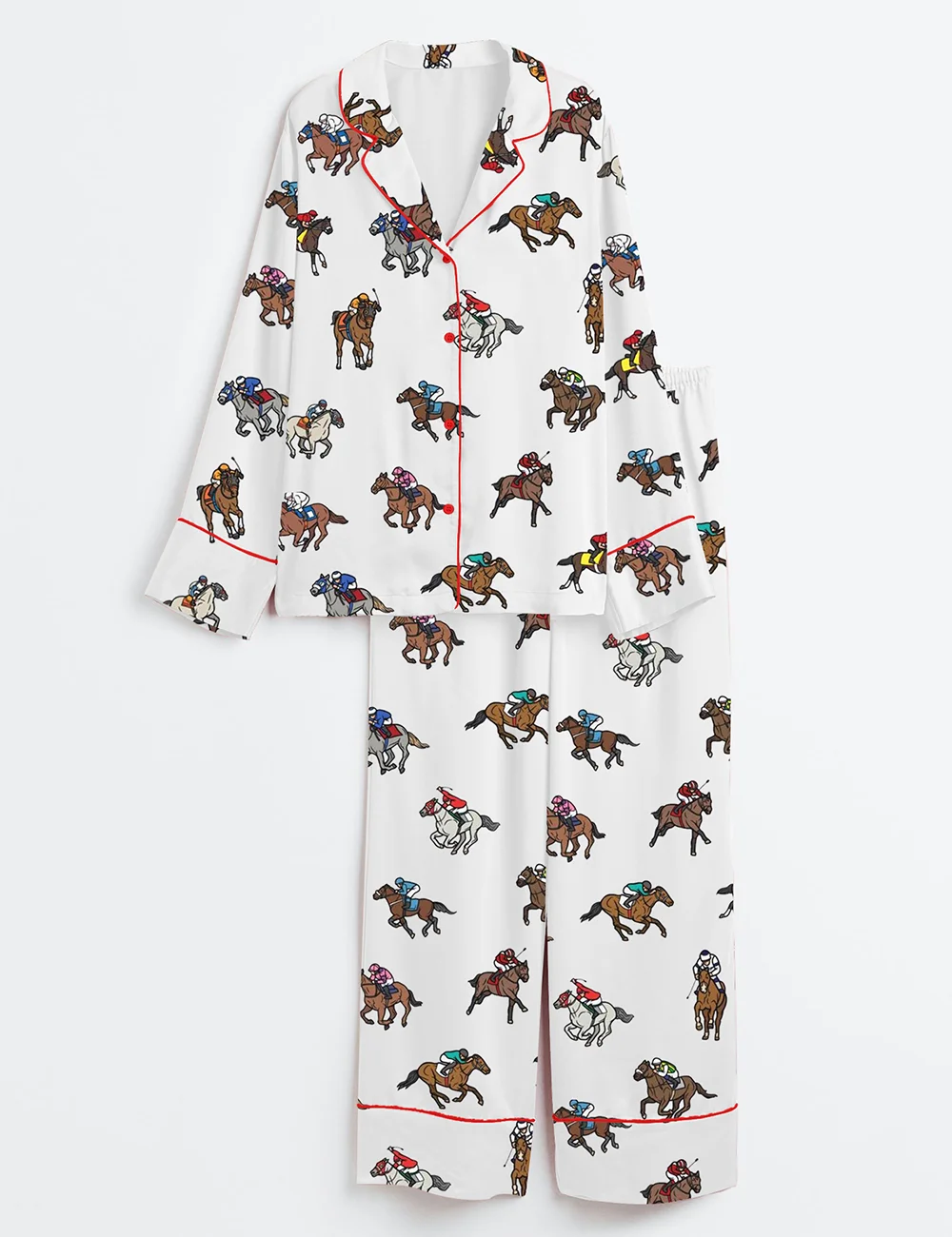 Women’s Derby Horse Racing Kentucky Derby 2025 Equestrian Jockey Print Long Sleeve Satin Pajama Set