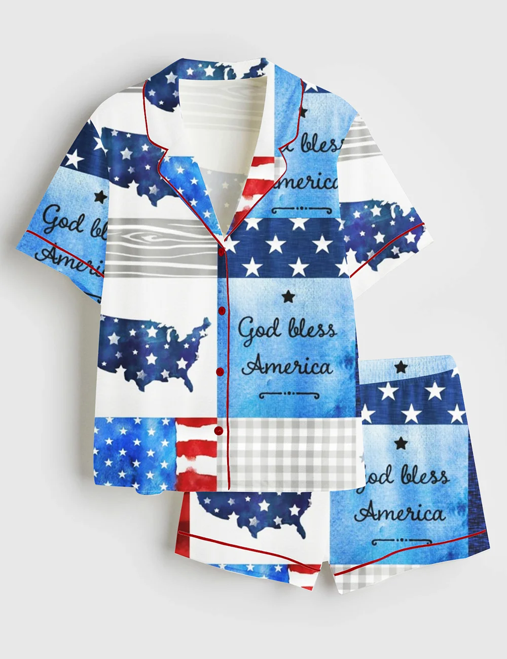 Women’s Fourth Of July Red White Blue USA Flag America God Bless America Land that I Love Short Sleeve Satin Pajama Set