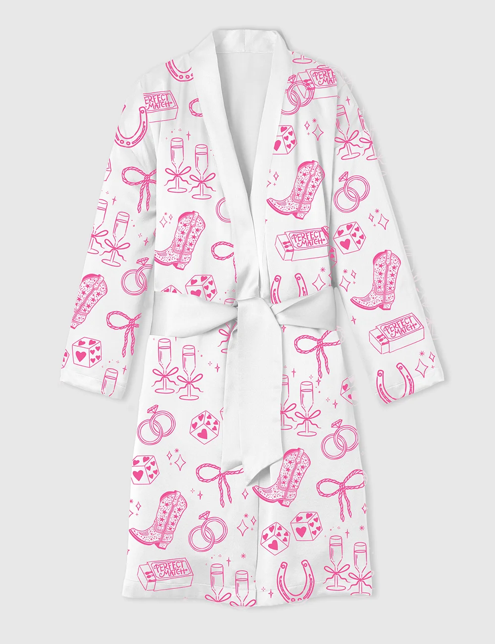Women’s Going To The Chapel Cowgirl Bride Coquette Bridal Bow Floral Wedding Satin Bathrobe