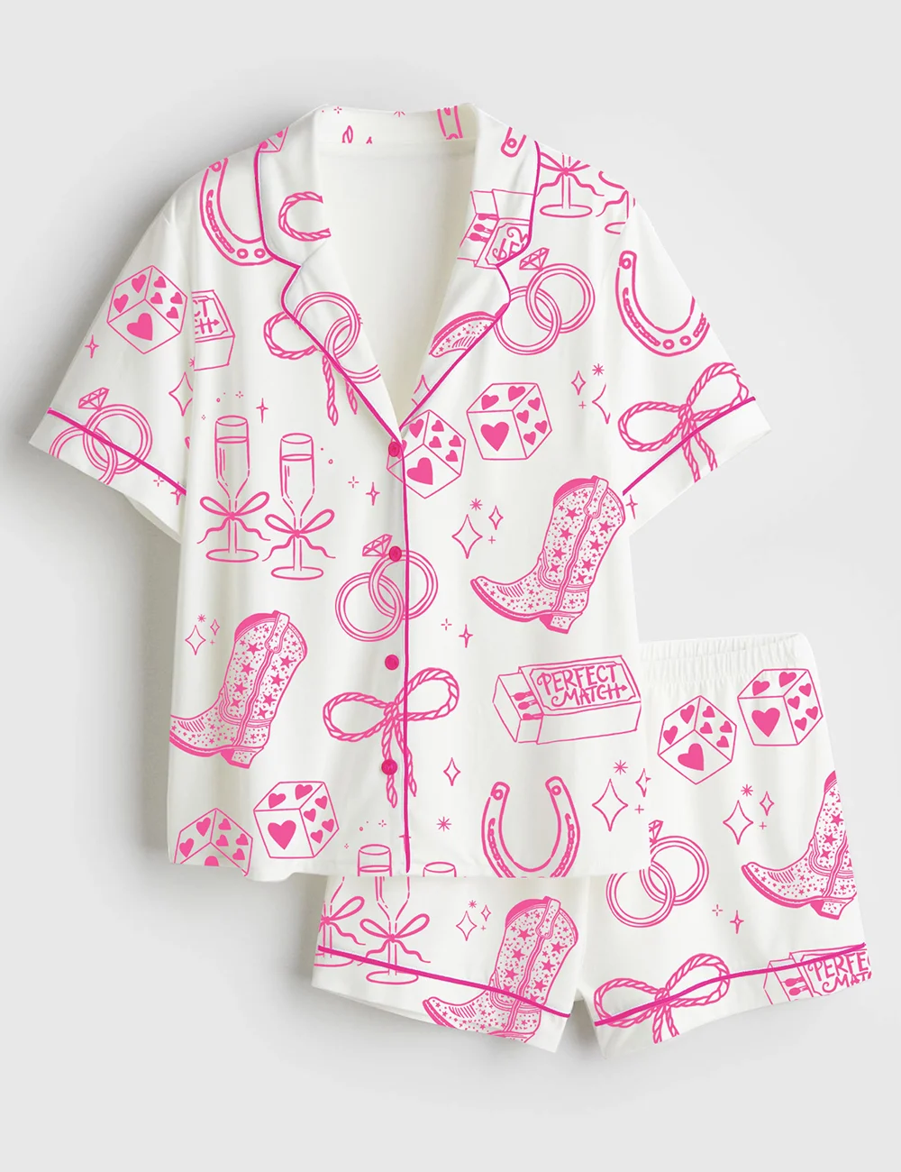 Women’s Going To The Chapel Cowgirl Bride Coquette Bridal Bow Floral Wedding Short Sleeve Satin Pajama Set