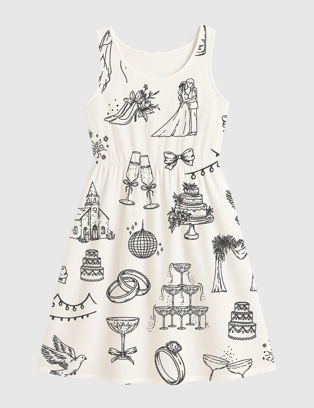 Women’s Hand Drawn Wedding Icons Champagne Wedding Timeline Sleeveless Dress