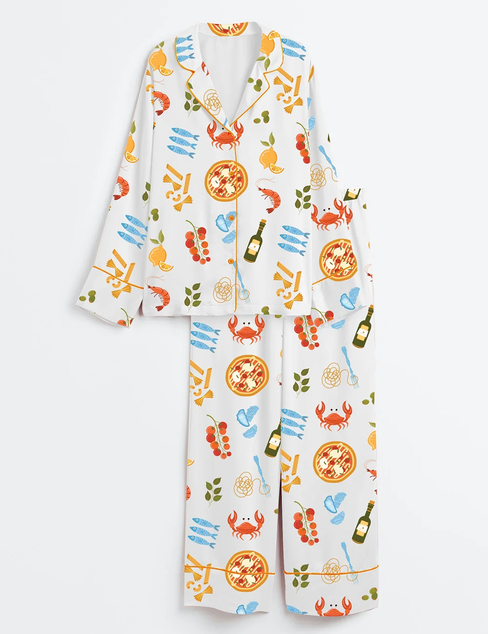 Women’s Italian Summer Fresh Pasta Twirls Juicy Tomatoes Aperol Spritzes And A Splash Of Olive Oil And Wine Long Sleeve Satin Pajama Set