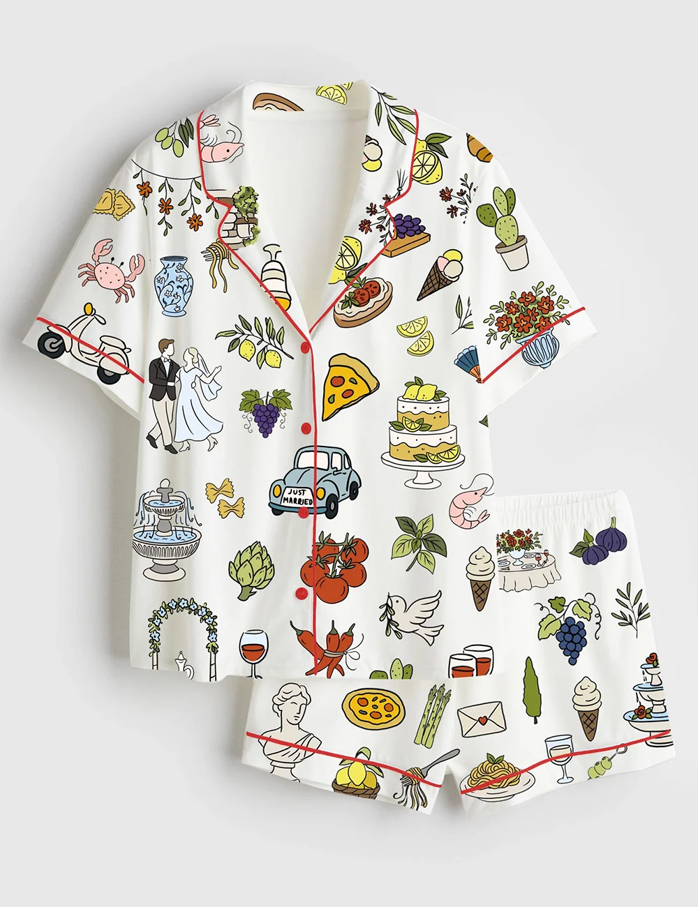 Women’s Italian Wedding Whimsical Tuscany La Dolce Vita Wedding Colorful Italy Wedding Short Sleeve Satin Pajama Set