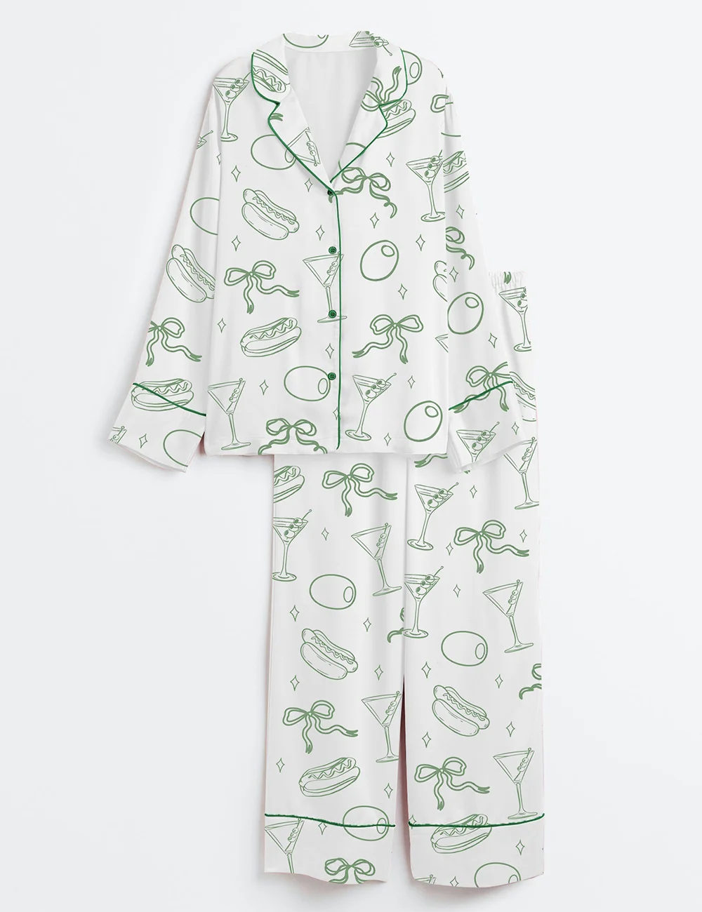 Women’s Martinis And Weenies Bachelorette Tinis Weenies Design Hot Dog Birthday Theme Dirty Martini Long Sleeve Satin Pajama Set