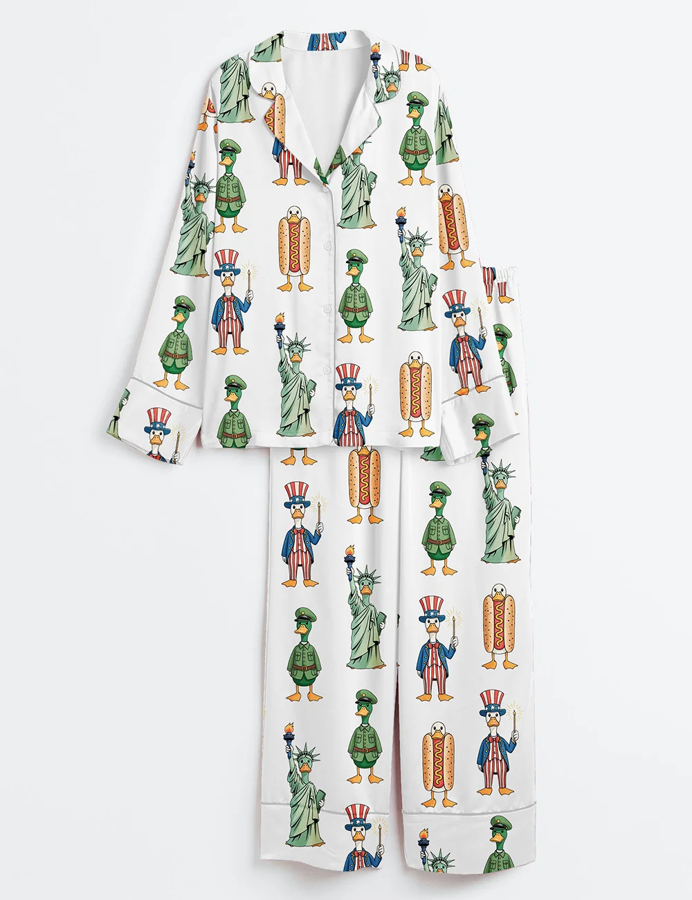 Women’s Patriotic Goose 4th Of July Silly Goose USA Goose Independence Day Patriotic Print Long Sleeve Satin Pajama Set