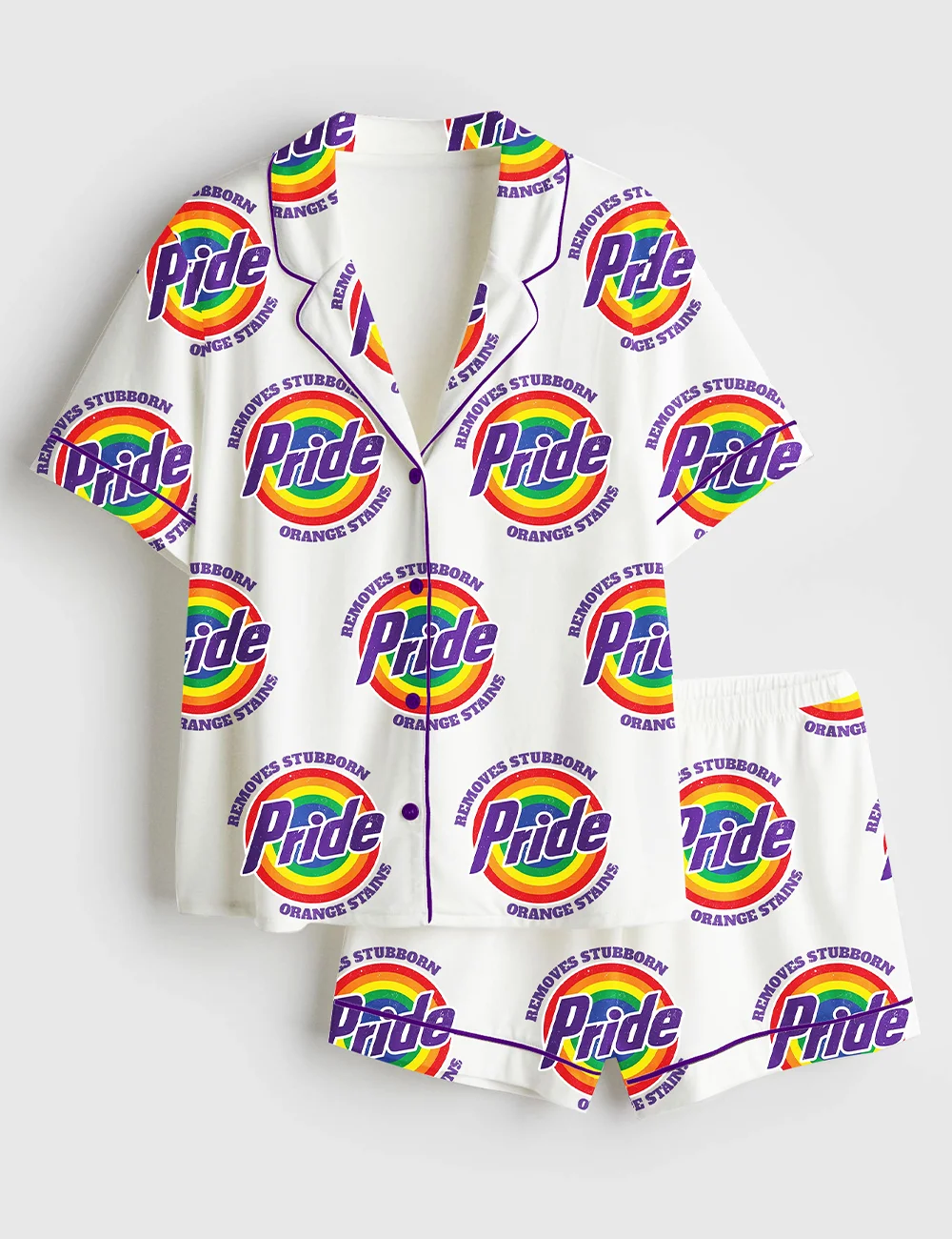 Women’s Pride Removes Stubborn Orange Stains LGBTQ Pride Month Print Short Sleeve Satin Pajama Set