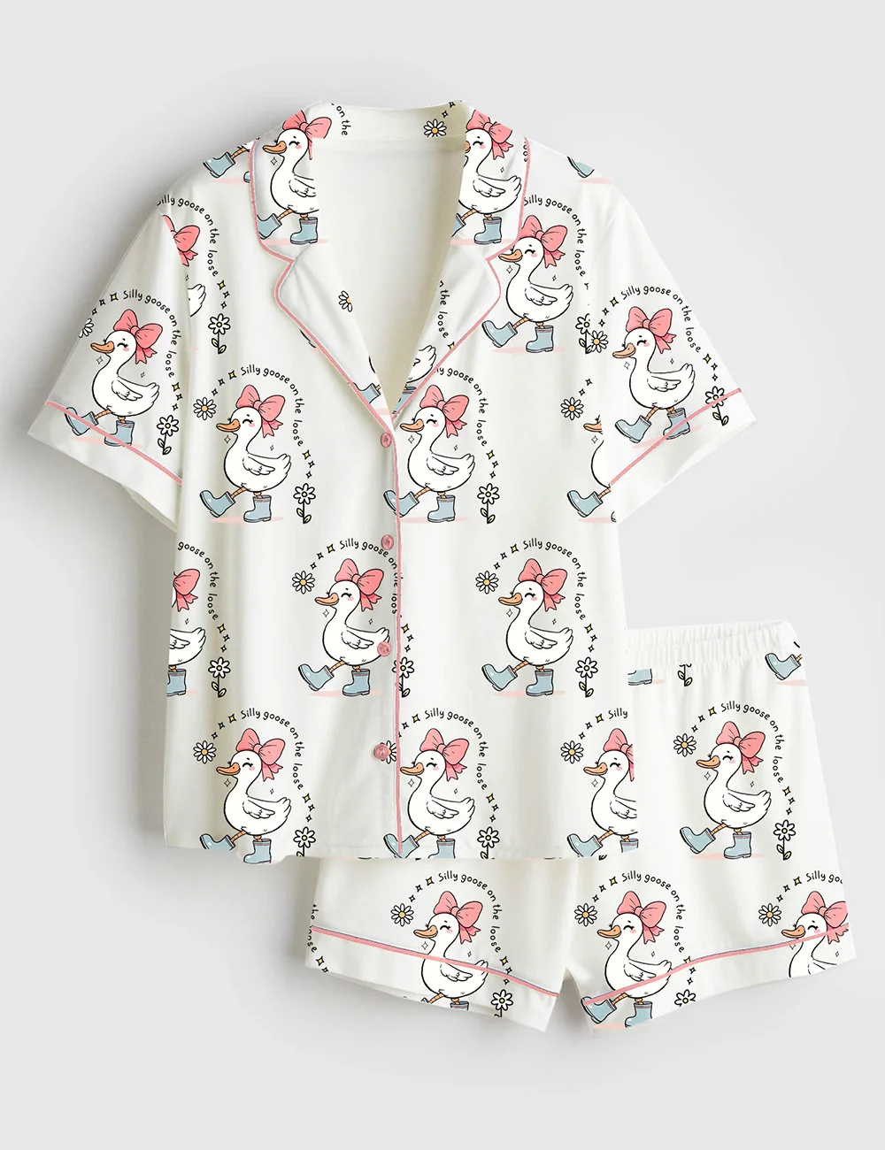 Women’s Silly Goose On The Loose Funny Farm Animal Print Short Sleeve Satin Pajama Set