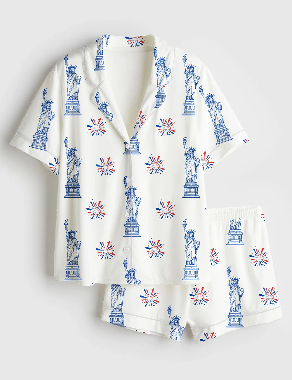 Women’s Statue Of Liberty Patriotic Freedom 4th Of July Pledge Of Allegiance Liberty And Justice For All Print Short Sleeve Satin Pajama Set