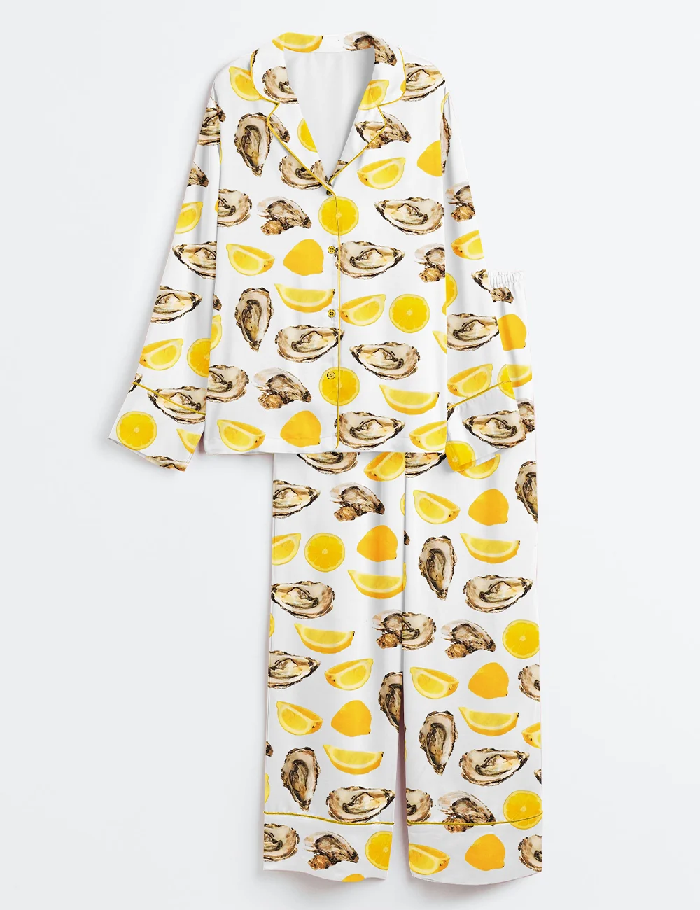 Women’s The World Is Your Oyster Fisherman Style Oyster Shells Orange Print Long Sleeve Satin Pajama Set