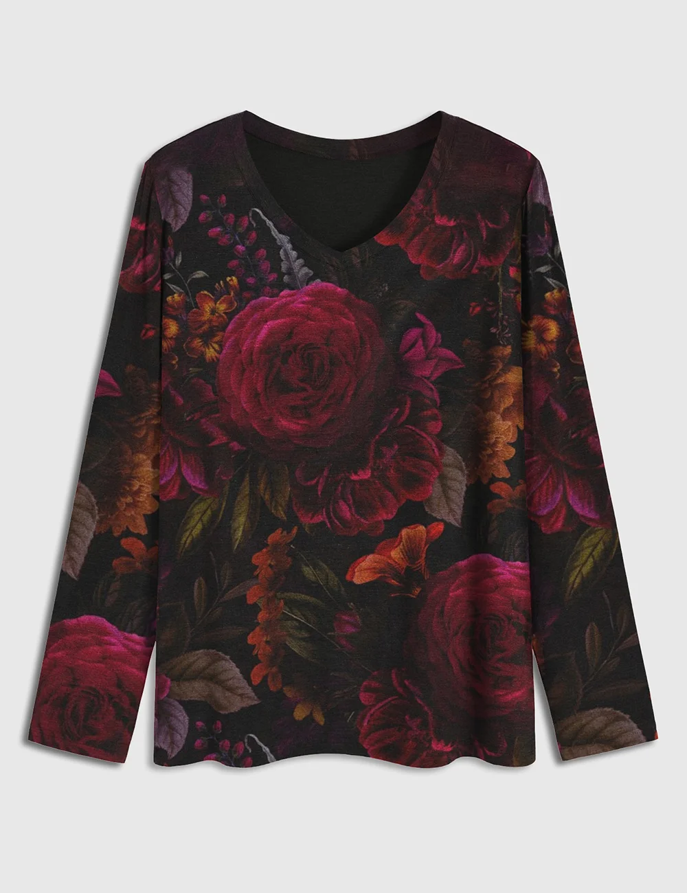 Women’s Vintage Black Dramatic Glamour Summer Romanticism Roses and Nostalgic Gothic Flowers Shirt