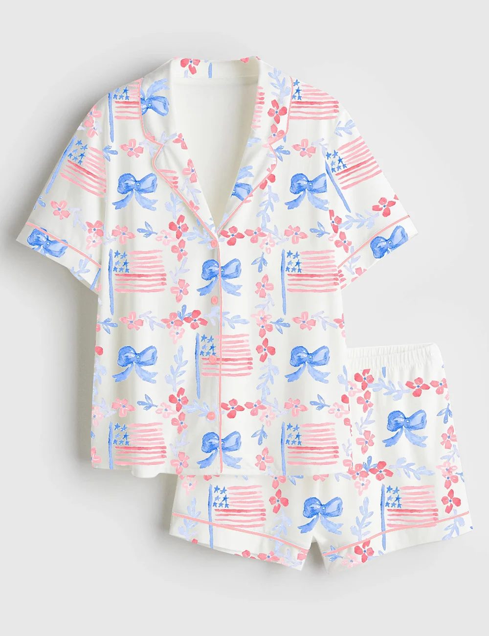 Women’s Watercolor Patriotic 4th Of July Independence Day USA Flag Short Sleeve Satin Pajama Set