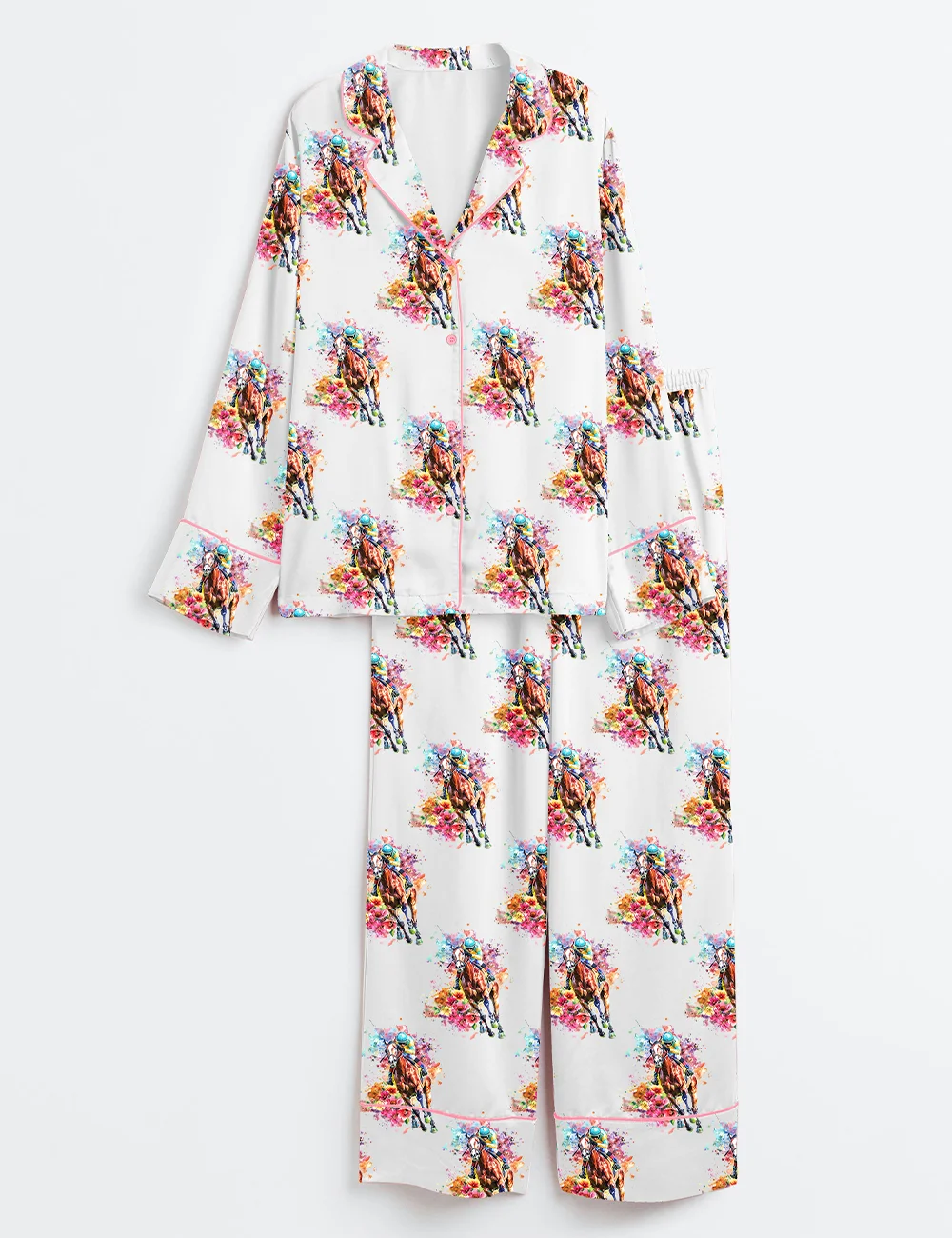 Women’s Western Kentucky Derby Party Talk Derby to Me Racing Horses Print Long Sleeve Satin Pajama Set