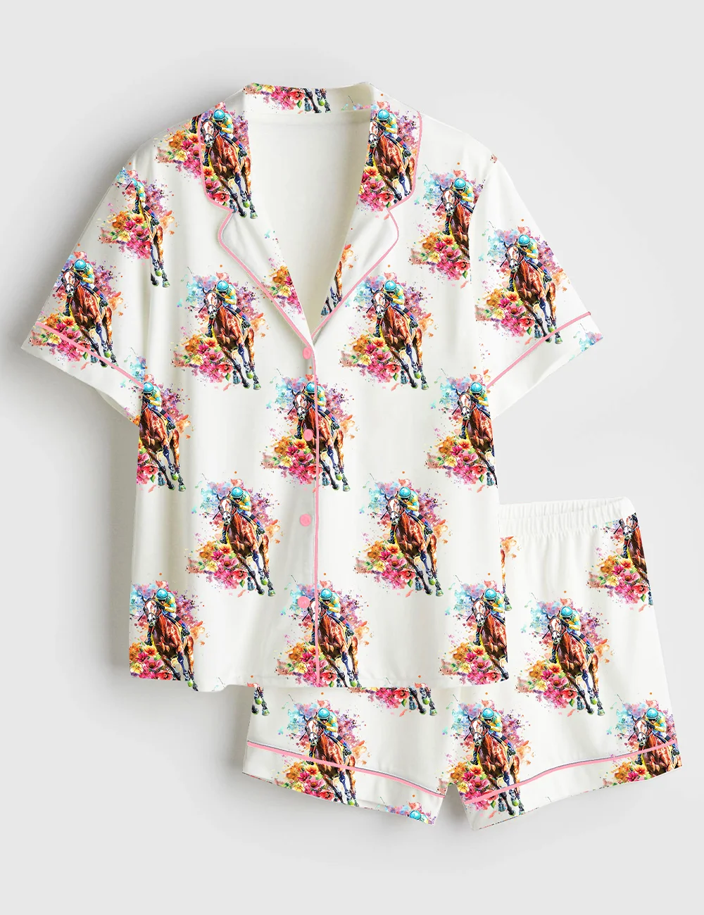 Women’s Western Kentucky Derby Party Talk Derby to Me Racing Horses Print Short Sleeve Satin Pajama Set