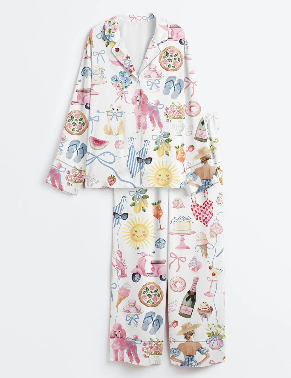 Women’s Whimsical Wedding Dolce Vita Wedding Coquette Mediterranean Aperol Beach Travel Dog Champagne Beach Long Sleeve Satin Pajama Set