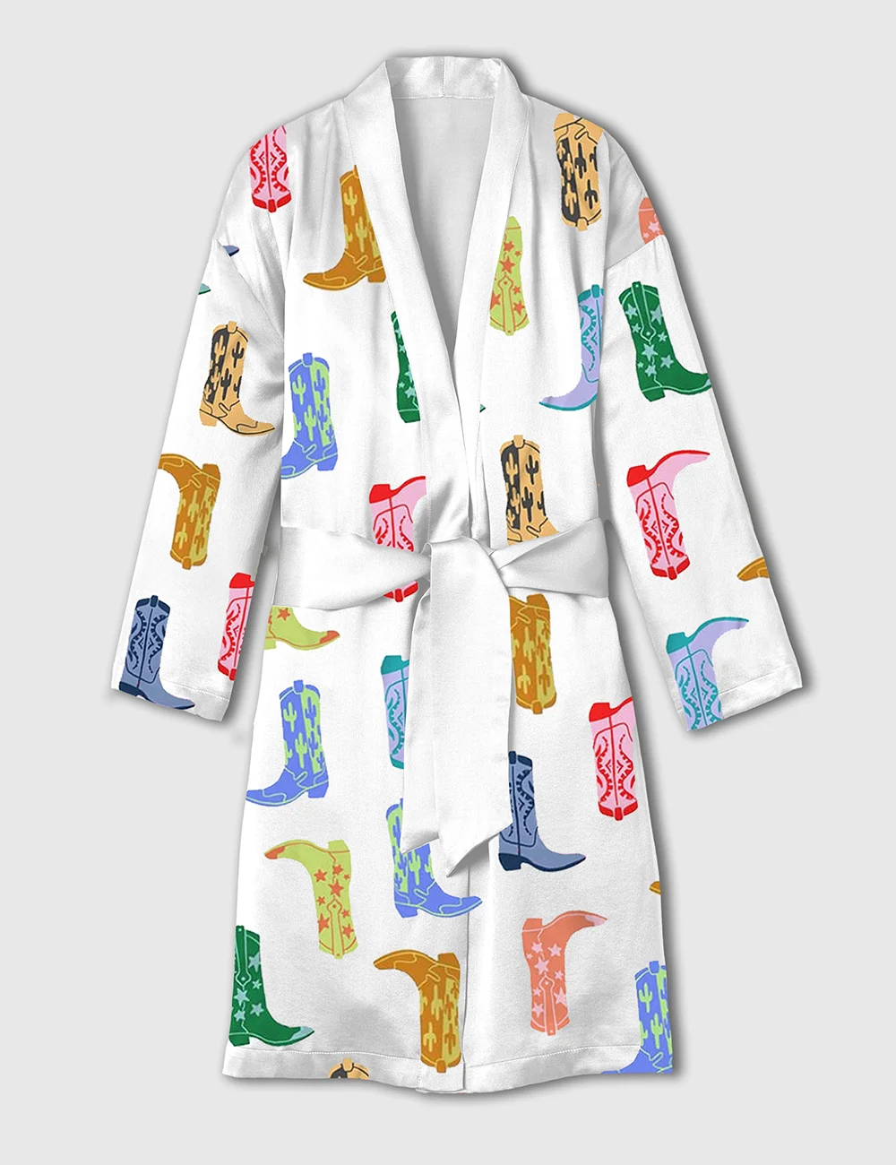 Women's Colorful Cowboy Boot Satin Bathrobe