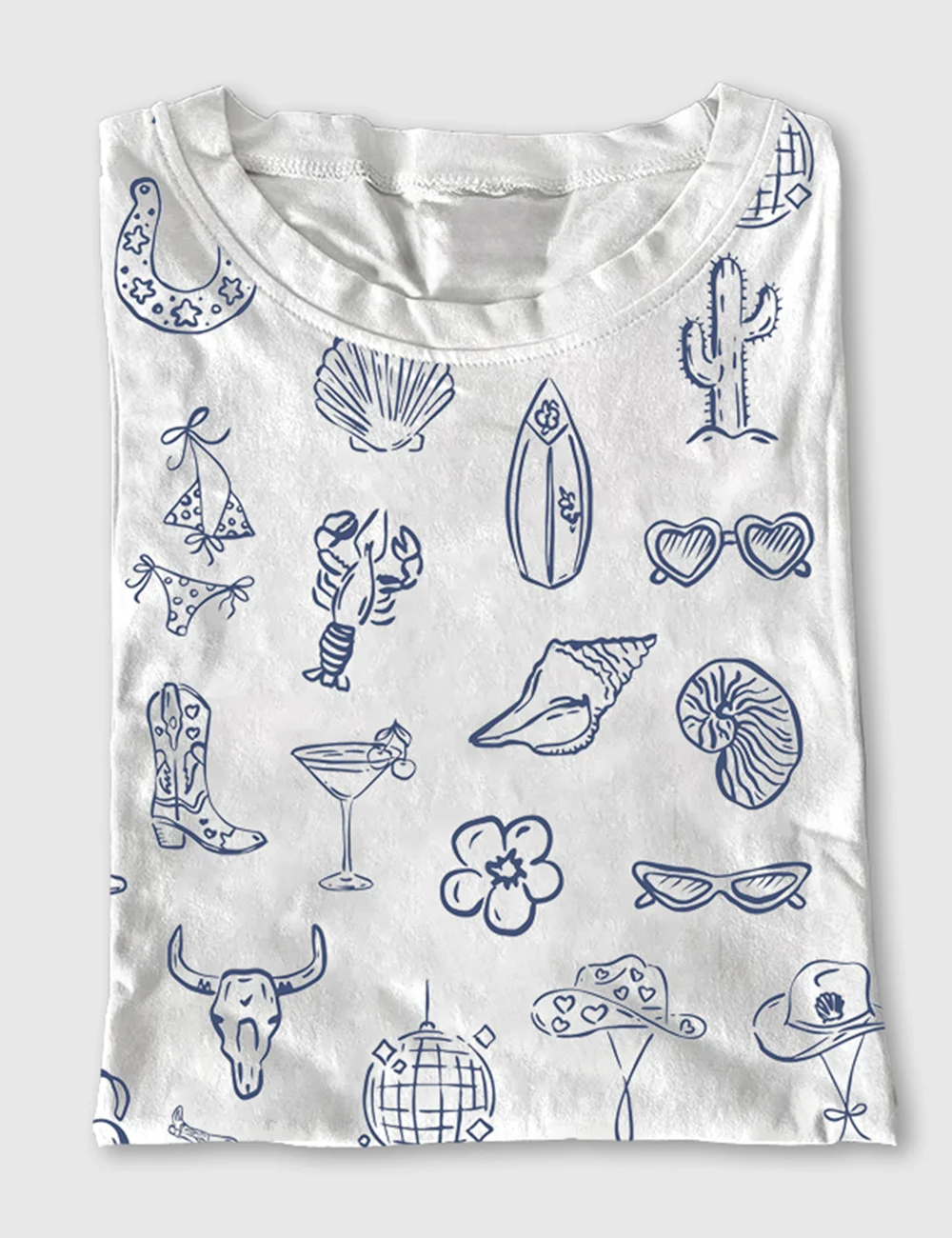 Women's Cowgirl Coastal Bachelorette Hand Drawn Whimsical Short Sleeve T-Shirt