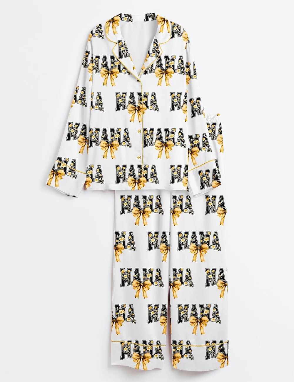 Women's Floral Mama Coquette Mama Sunflower Girl Coquette Chinoiserie Floral Long Sleeve Satin Pajama Set