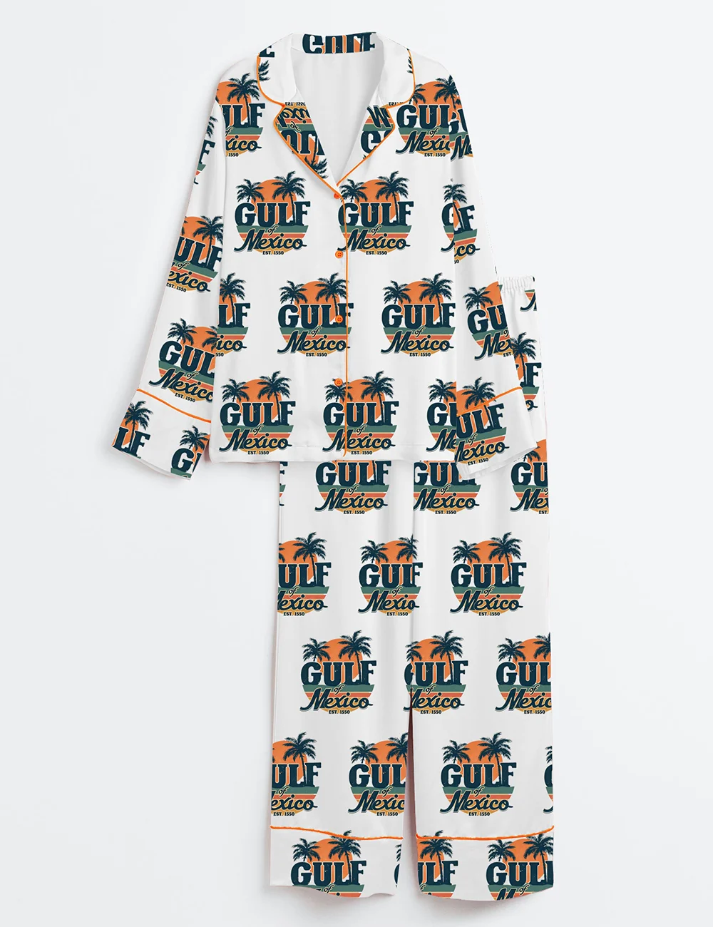 Women's Gulf Of Mexico Texas Alabama Mississippi Florida Beach Long Sleeve Satin Pajama Set
