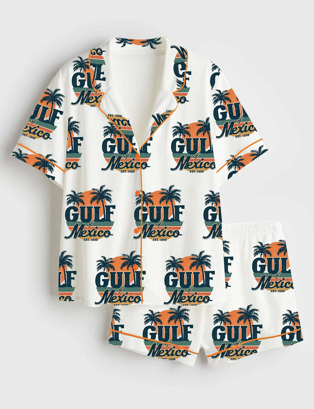 Women's Gulf Of Mexico Texas Alabama Mississippi Florida Beach Short Sleeve Satin Pajama Set