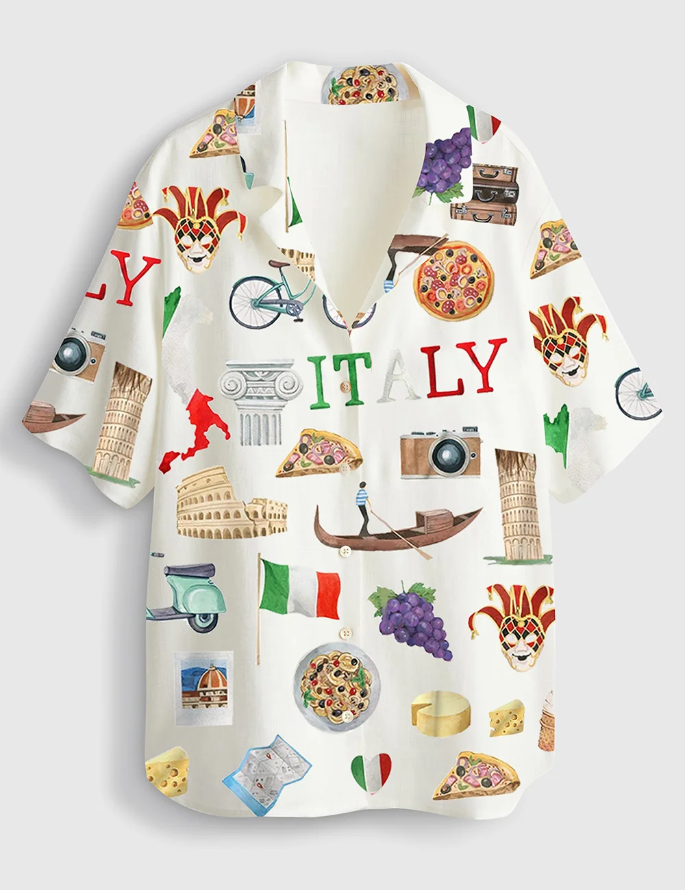 Women's Italy Roma Travel Short Sleeve Linen Blend Hawaiian Shirt