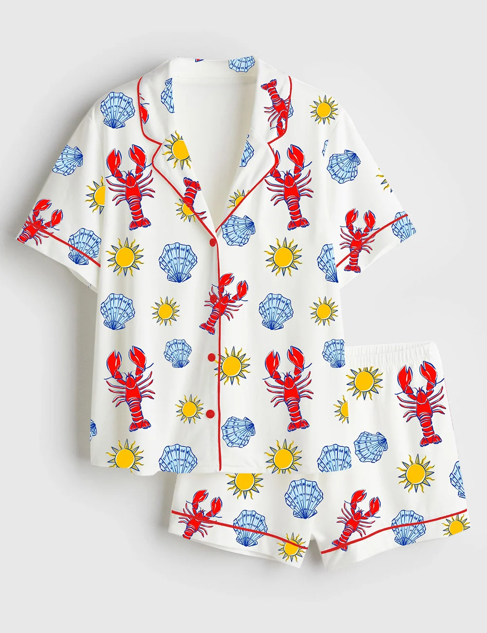 Women's Shell Celebrate Summer Fun With A Splash Of Sunshine And Ocean Treasures Summer Shell Short Sleeve Satin Pajama Set